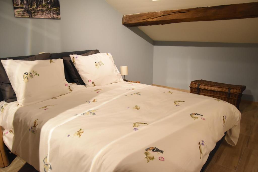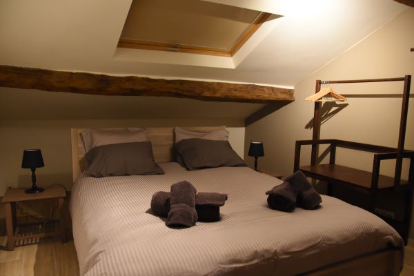 - 1 lit 2 personnes 160×200 cm avec couette 240 x 200 cm et 4 oreillers
