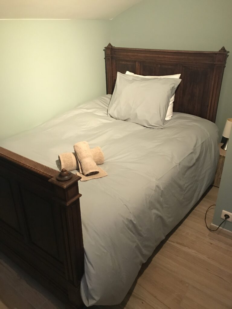 - 1 lit 1 personne 140×200 cm avec couette 240 x 200 cm et 4 oreillers